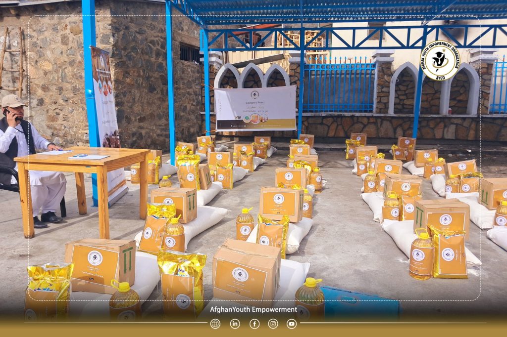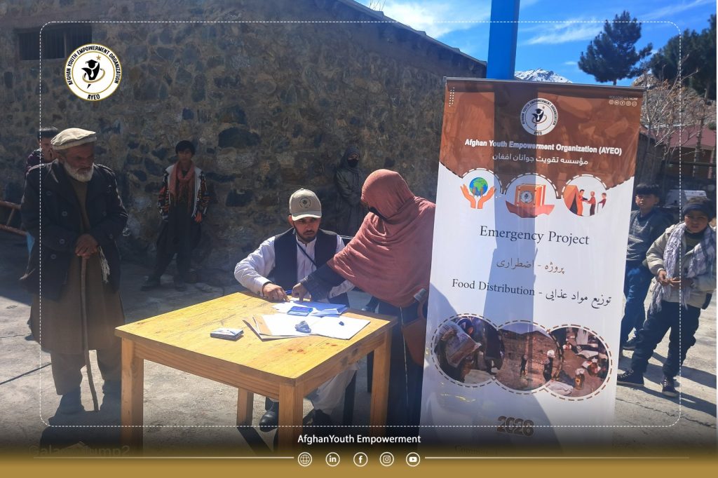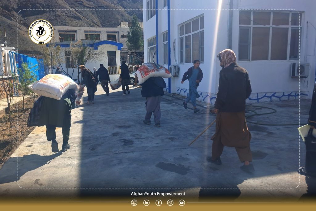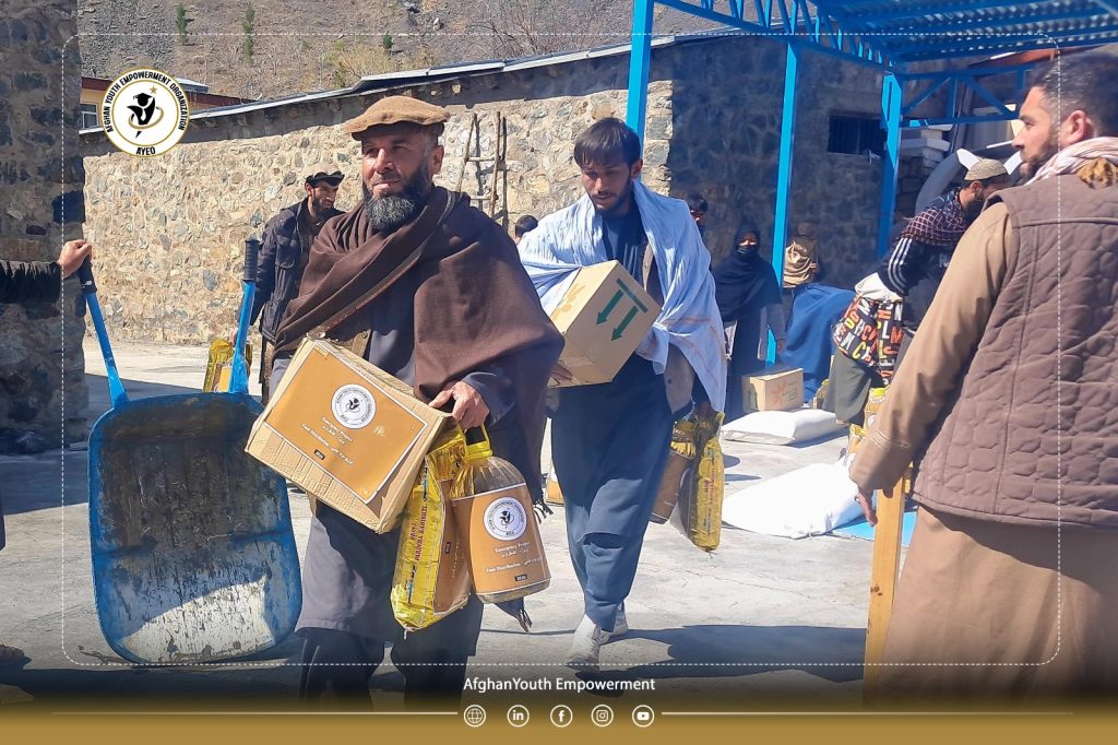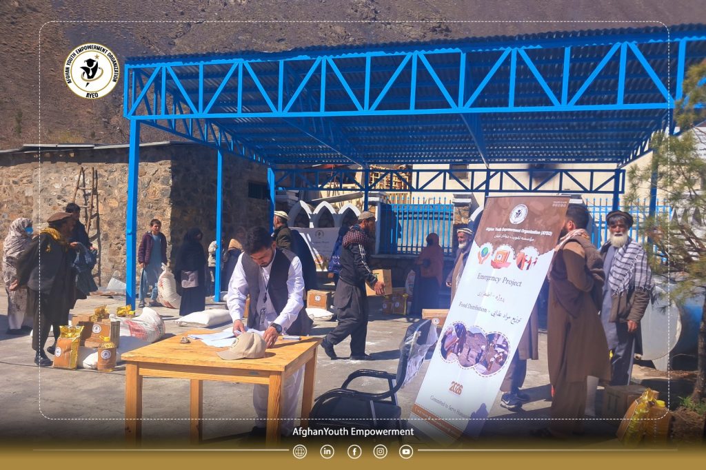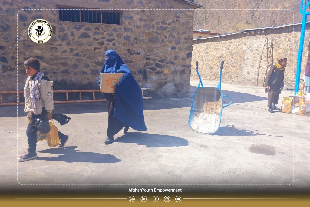 The Afghan Youth Empowerment Organization (𝗔𝗬𝗘𝗢), aiming to support vulnerable populations and strengthen social resilience, distributed essential food packages—including flour, rice, cooking oil, beans, tea, sugar, and salt—across eight districts of Panjshir Province.